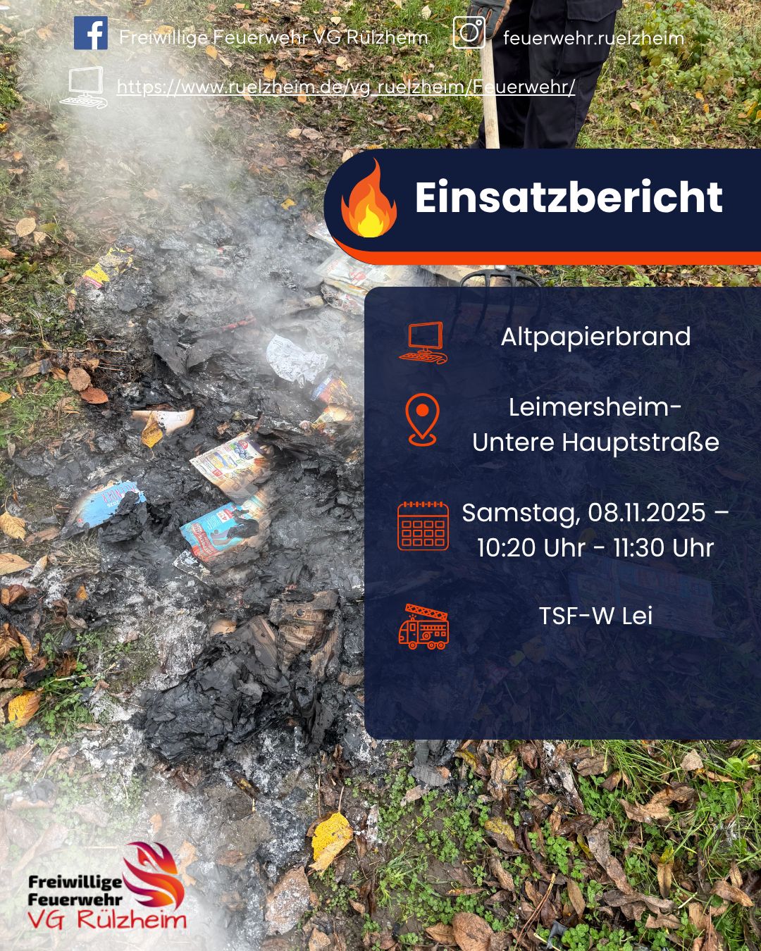 Der stellvertretende Wehleiter wurde heute Morgen telefonisch über rauchende Werbeprospekte auf einem Feldweg informiert. Vor Ort konnte ein Stapel Werbeprospekte vorgefunden werden, welche noch rauchten und nicht vollständig verbrannt waren. Mit einer Mistgabel und der Kübelspritze wurden diese auseinander gezogen und vollständig abgelöscht.
