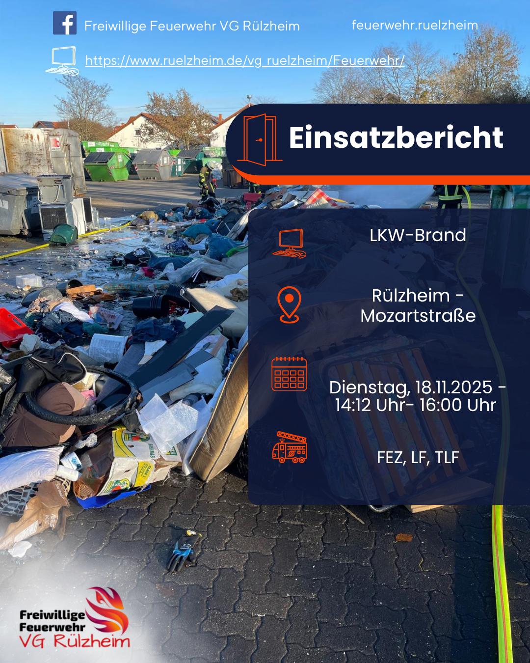 Gestern wurden wir zu einem Lkw-Brand auf dem Wertstoffhof alarmiert. Beim Eintreffen stand der betroffene Behälter noch auf dem Fahrzeug. In enger Abstimmung mit den Mitarbeitern vor Ort wurde dieser abgeladen, sodass wir umgehend mit dem Löschangriff unter Atemschutz beginnen konnten.