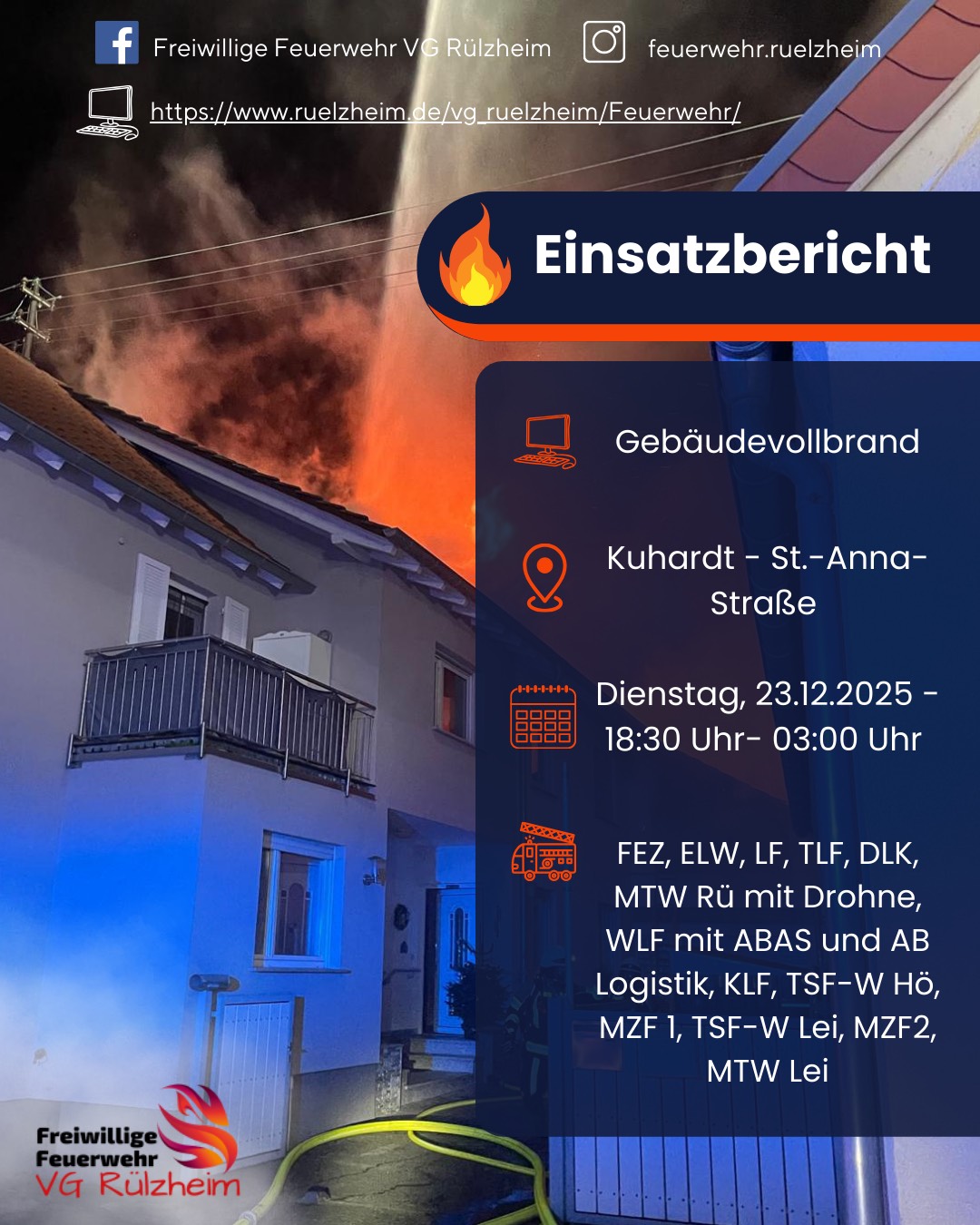 Ortsgebiet alarmiert. Bei der Ankunft des ersten Fahrzeuges der Einheit Kuhardt