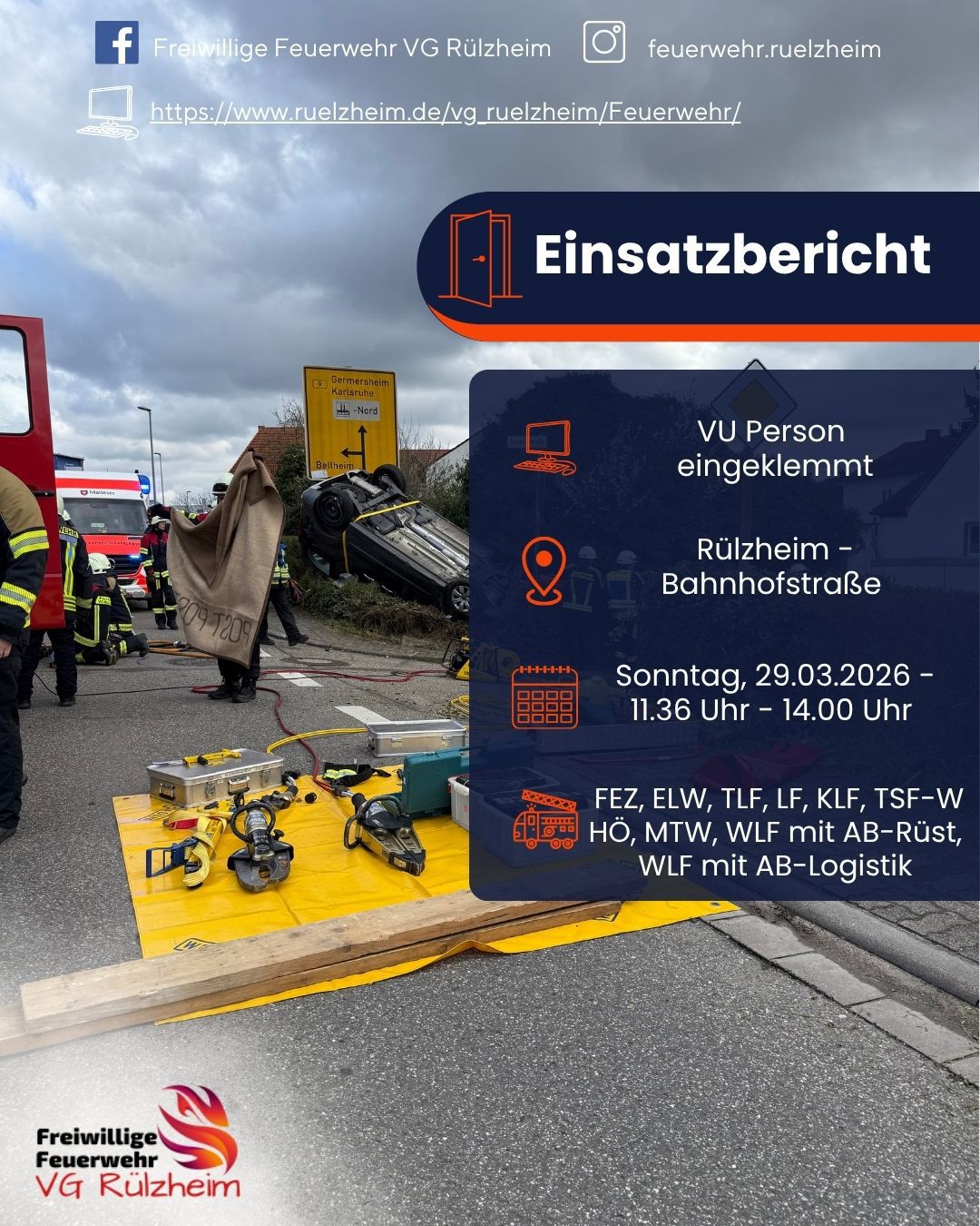 Heute Vormittag wurde die Einheit Rülzheim zu einem Verkehrsunfall mit eingeklemmter Person in die Bahnhofstraße alarmiert. Beim Eintreffen der ersten Kräfte bestätigte sich die Lage.