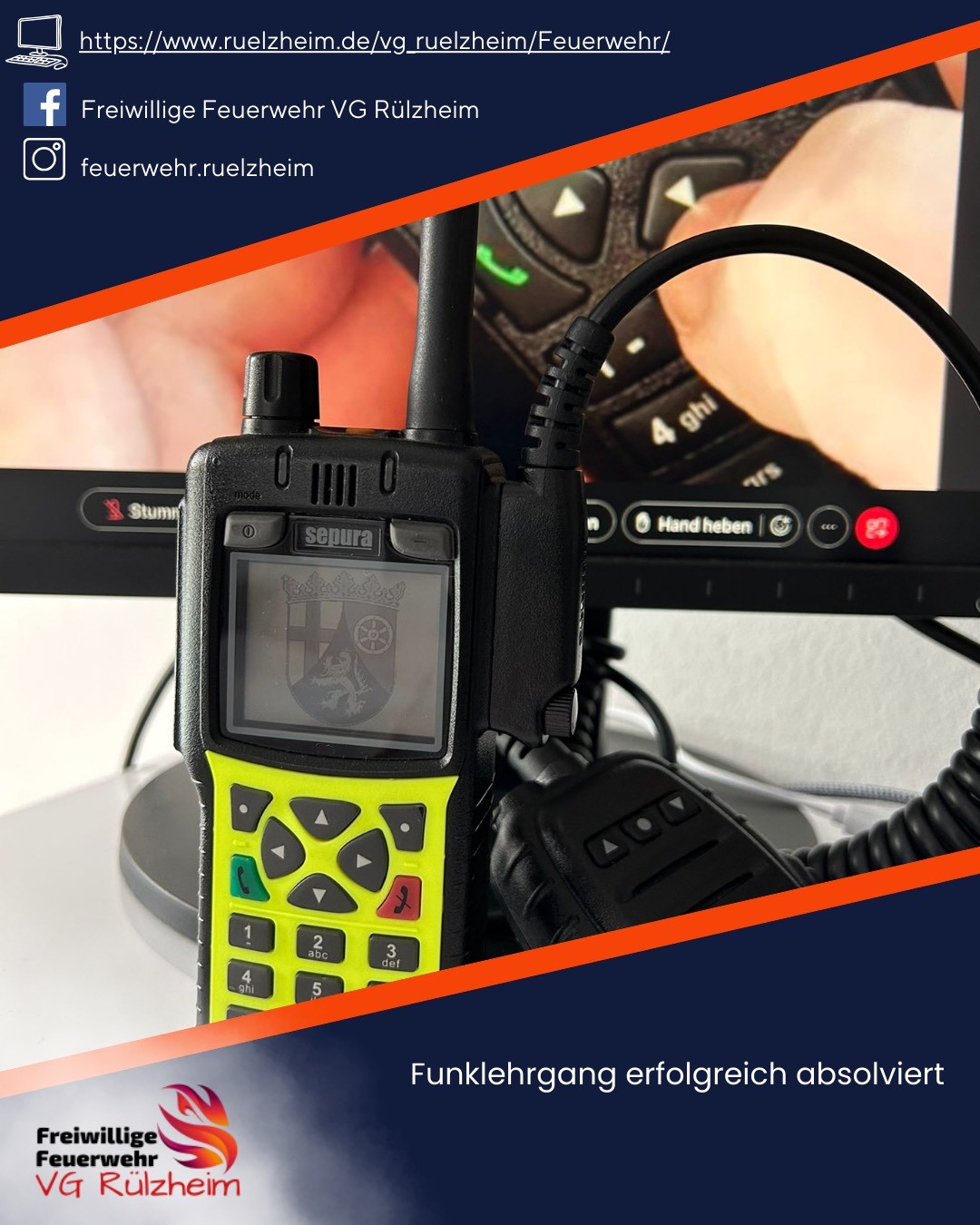 Am 22.11.2025 konnten insgesamt fünf Kamerad*innen unserer VG-Feuerwehr ihre Prüfung des Funklehrgangs absolvieren. An vier Abenden wurde in online Meetings unter anderem das richtige Bedienen von Funkgeräten, der Sprechfunkbetrieb und auch Gerätekunde vermittelt.