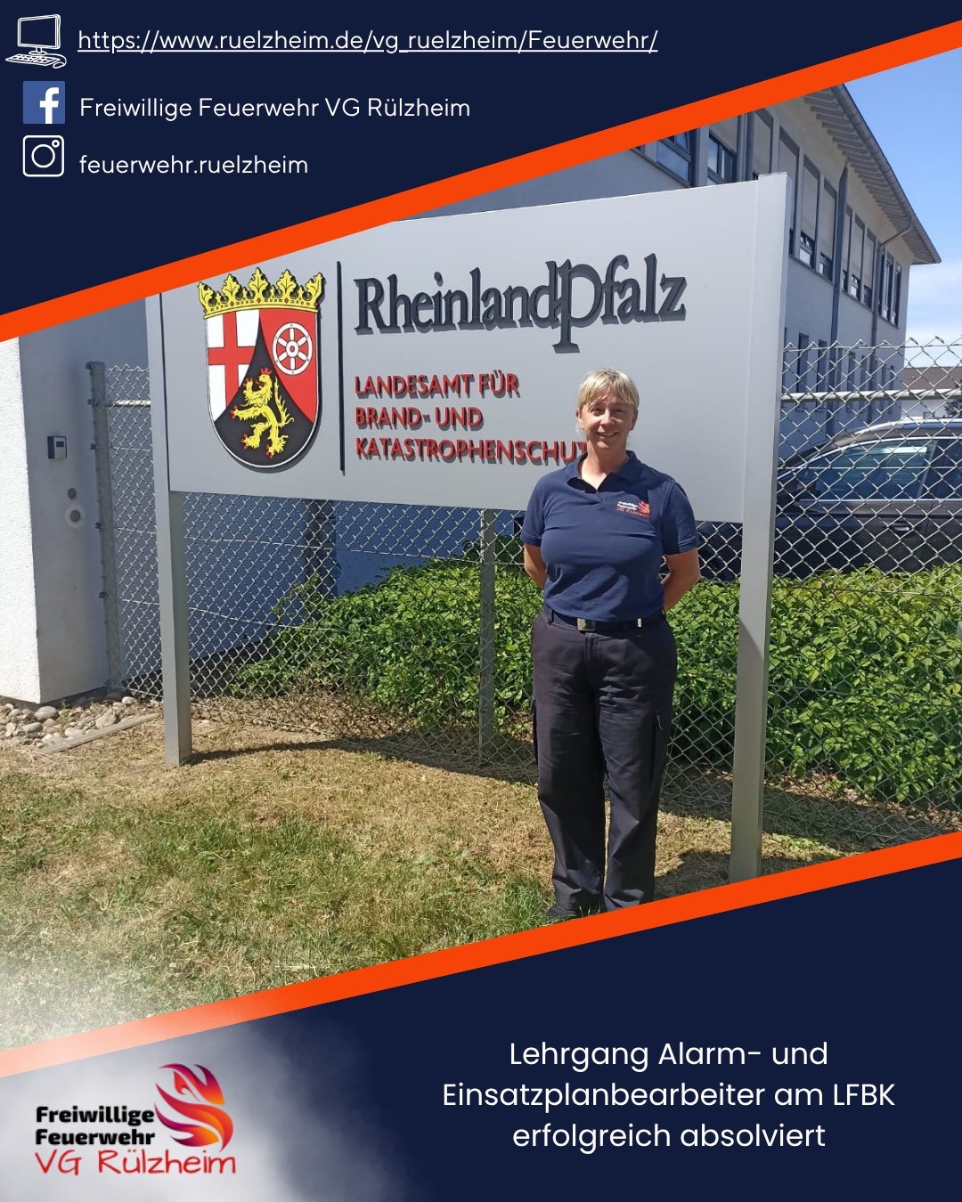 Unsere Kameradin und Feuerwehrsachbearbeiterin Tanja Seither besuchte vom 10.11. bis 14.11. den Lehrgang am LFBK. Alarm- und Einsatzpläne sind ein zentrales Einsatzmittel für die Alarmierungsstellen /