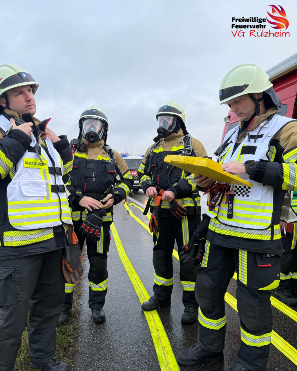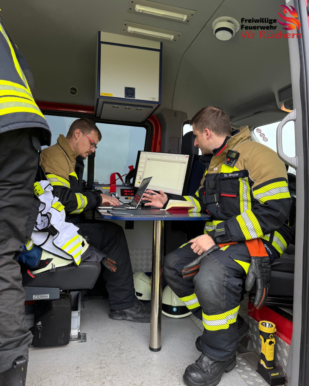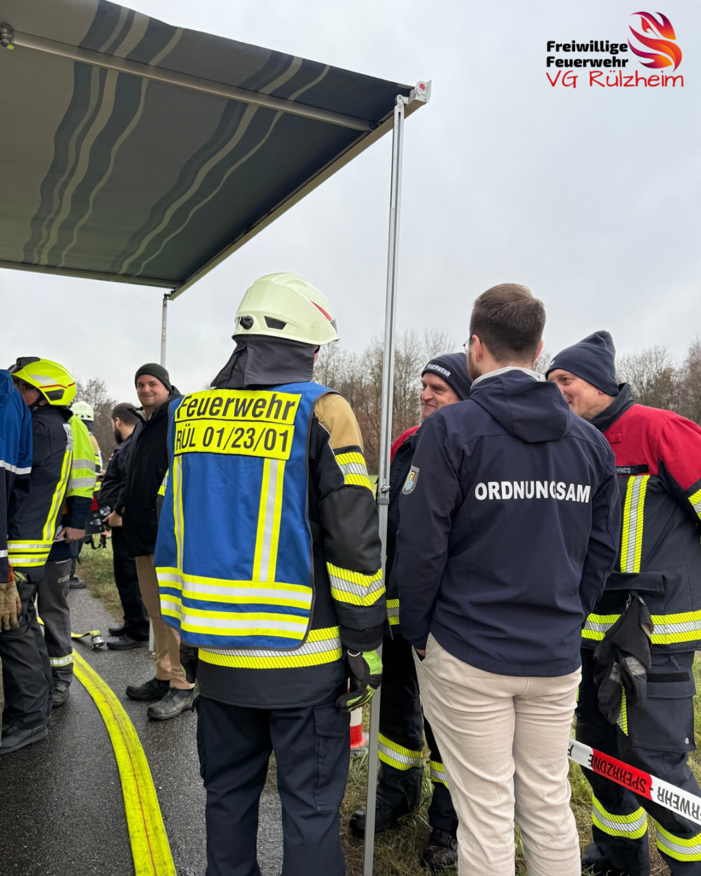 Solche Einsätze erfordern eine enge Koordination und klare Absprachen. Deshalb war die Führungsstaffel der Feuerwehr am Einsatzleitwagen, während die Feuerwehreinsatzzentrale im rückwärtigen Raum unterstützte. Parallel arbeitete die Technische Einsatzleitung im Lagezentrum. Vor Ort standen zudem Fachberater der Feuerwehr und Unternehmen und der Leiter des Gefahrstoffzuges des Landkreises Germersheim bereit. Eine Teileinheit des Gefahrstoffzuges aus Wörth führte im Ort Messungen durch. Für die Sicherheit auf der Straße sorgte der Landesbetrieb Mobilität.