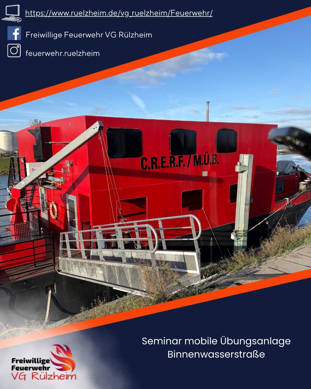 Im viertägigen Seminar werden umfassend Themen wie die Gefahren und das richtige Verhalten auf Binnenschiffen vermittelt. Dazu gehören sowohl Theorie als auch Praxis in den Bereichen Menschenrettung von Schiffen, Leckabwehr sowie das Betreten von Schiffen über Feuerwehrboote. Ein weiterer Schwerpunkt ist die Brandbekämpfung auf Binnenschiffen, die im Rahmen einer Realbrandausbildung in einer gasbefeuerten Übungsanlage durchgeführt wird. Zusätzlich wird erprobt, wie die persönliche Schutzausrüstung gegen Ertrinken schützen kann.