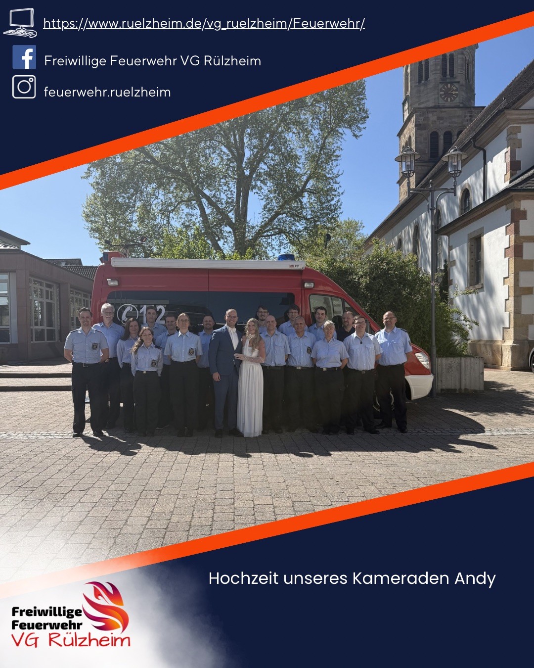 Verbandsgemeindefeuerwehr zum Spalier stehen vor Ort. Wir wünschen den beiden