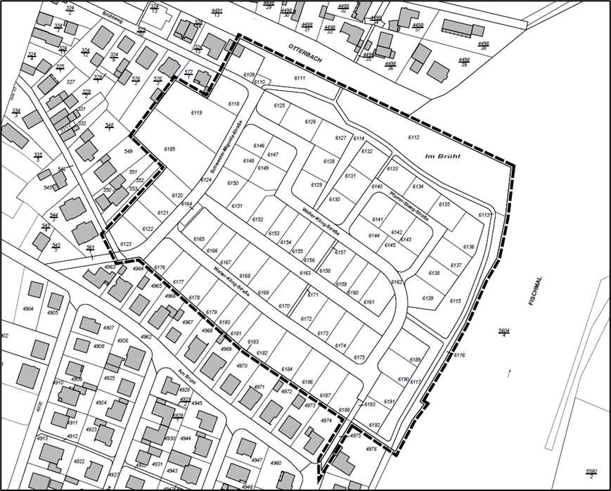 die südlichen Grenzen der Flurstücke 4491/13 (Otterbach) sowie 5604/4