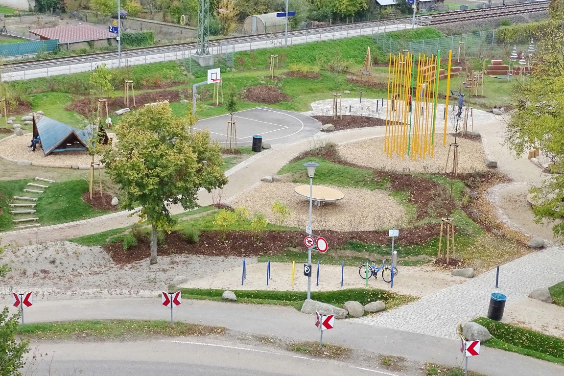 Die Anlage gilt insgesamt als Spielplatz und deshalb sind hier, wie auf allen Spielplätzen, keine Hunde erlaubt. Dies gilt auch für den Weg, der durch die Anlage führt.